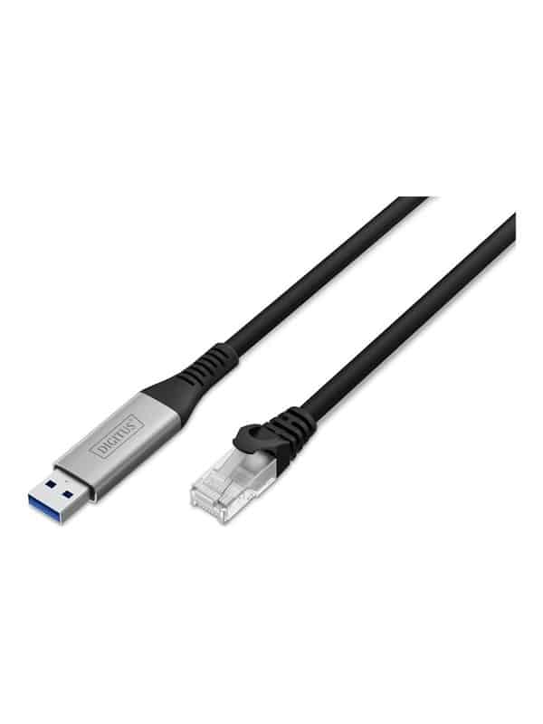Netværkskabel, USB Type A (han) til RJ-45 (han), 15 m, 6.2 mm, S/FTP, duplex, CAT 6a, USB 3.2 Gen 1, halogenfri, Gigabit Ethernet support, sort