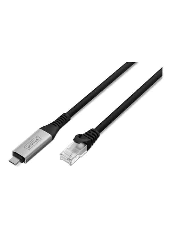 Netværkskabel, USB-C (han) til RJ-45 (han), 15 m, 6.2 mm, S/FTP, duplex, CAT 6a, USB 3.2 Gen 1, Gigabit Ethernet support, halogenfri, tovejs, sort
